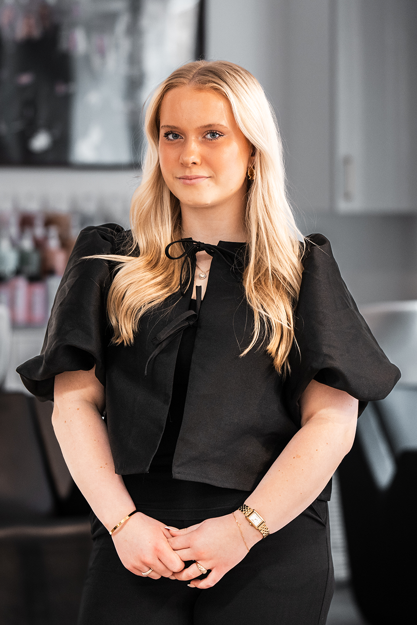Maud är väldigt social av sig och tycker mötet med människor är det roligaste med jobbet. Hon tycker mycket om att jobba med långa hår och olika slingtekniker såsom folieslingor & balayage.